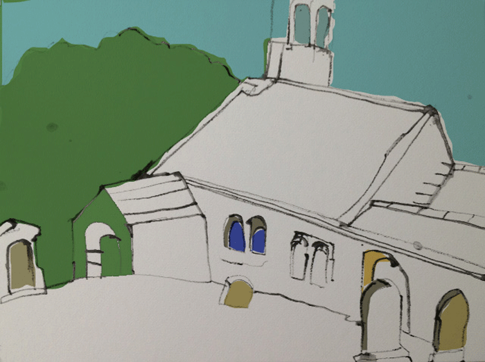 Drawing with digital colour 'St Peter's Church, Heysham'