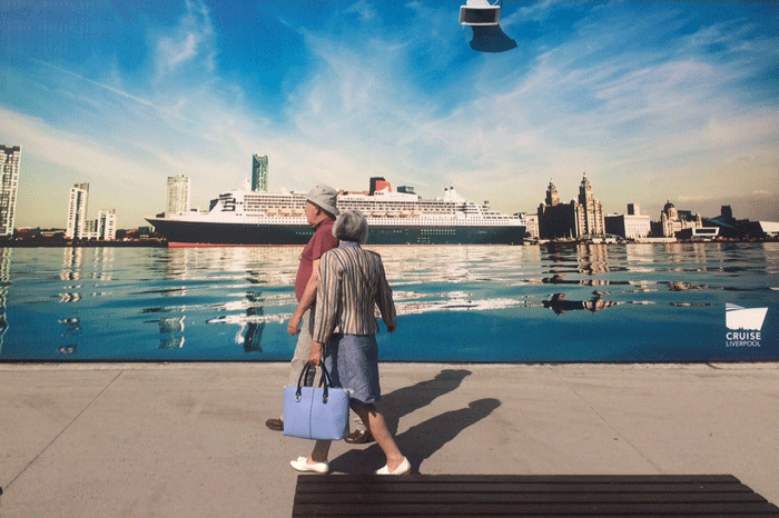 Passengers disembarking the Cunard Queen Mary in Liverpool