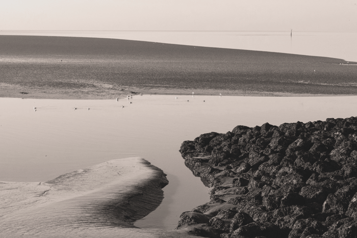 Textures and tones at Morecambe Bay, Lancashire, UK. You've got to look past the moulded sand to see the horizon.
