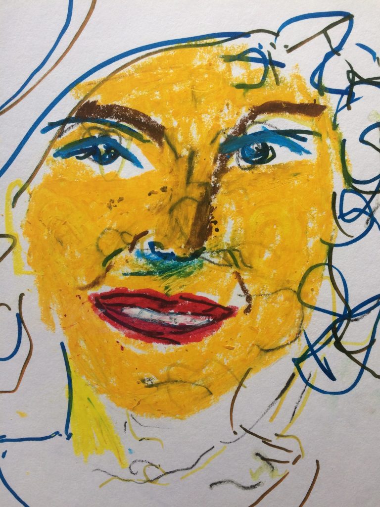 Sketchbook drawing with wax crayon, graphite and felt tip