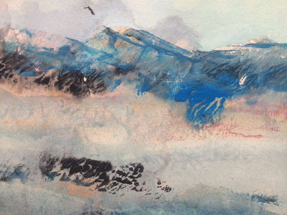 Mountains, Sky and Land, sketch in acrylic 30 x 40cm