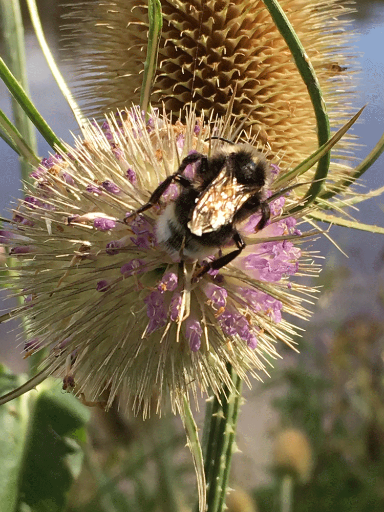 Wings of Gold - surely a dangerous harvesting for this bee on a prickly teasel