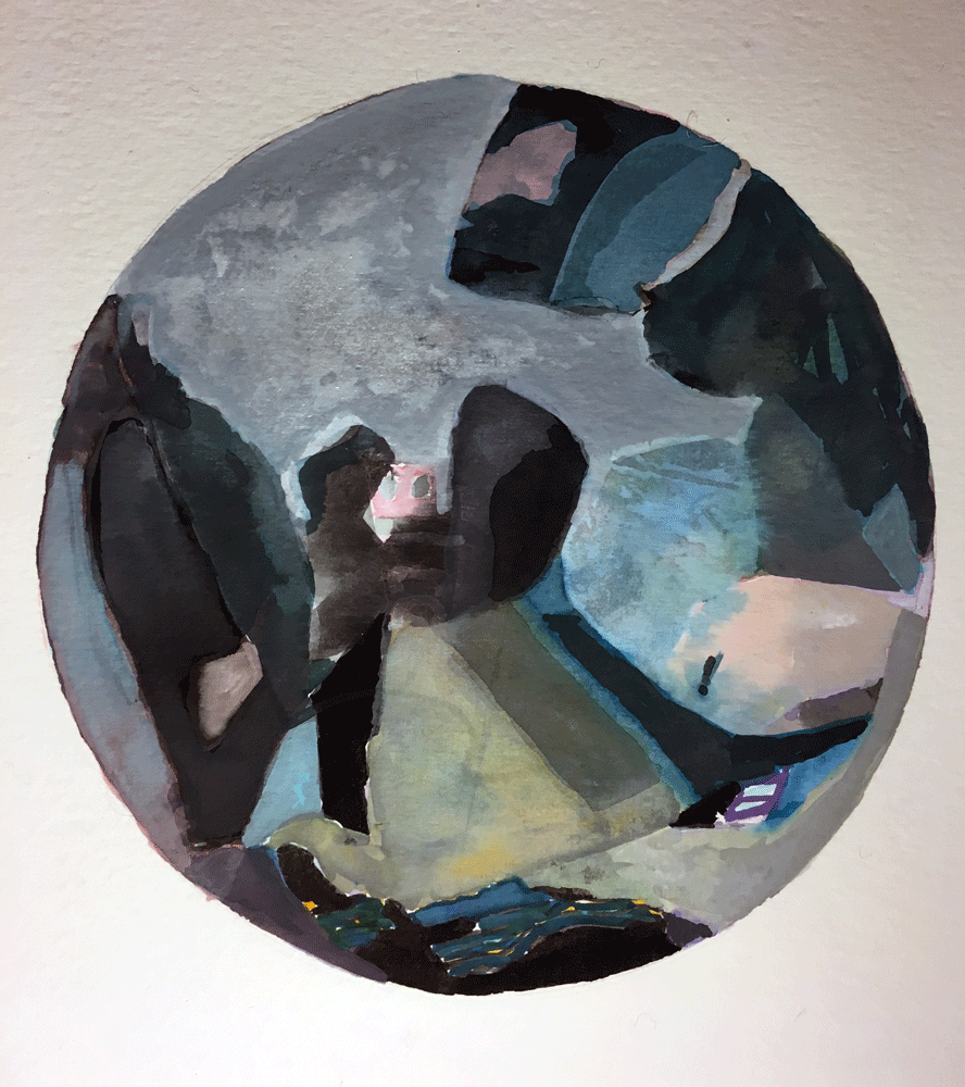 Life, Forms and Perspective by the Sea, watercolour on paper, 16cm diameter