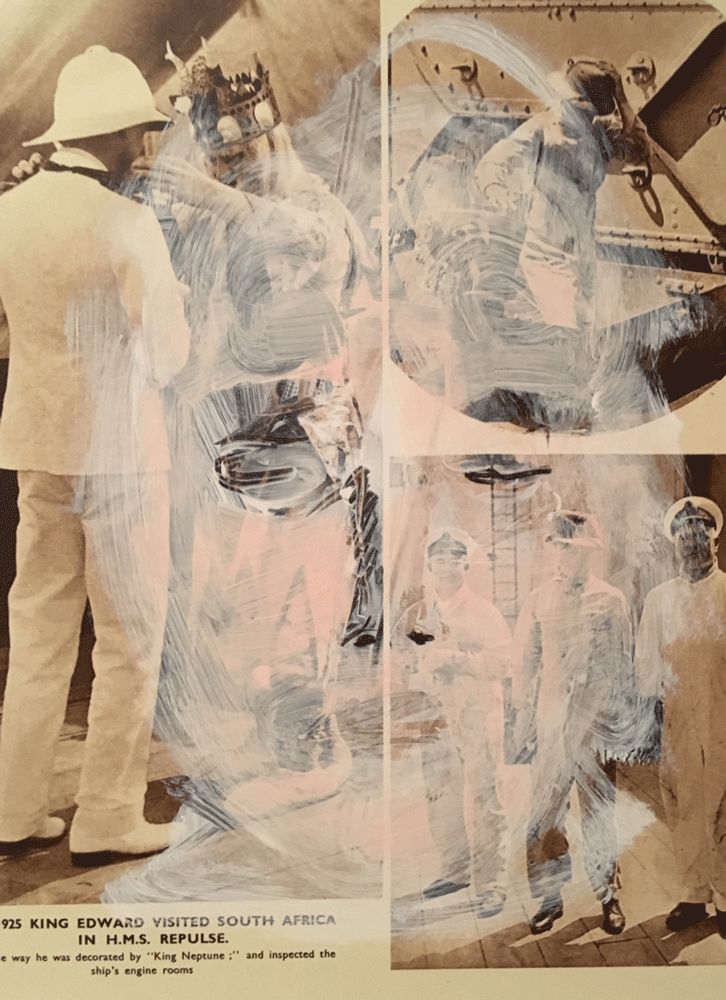 HMS Repulse, acrylic on Found Page