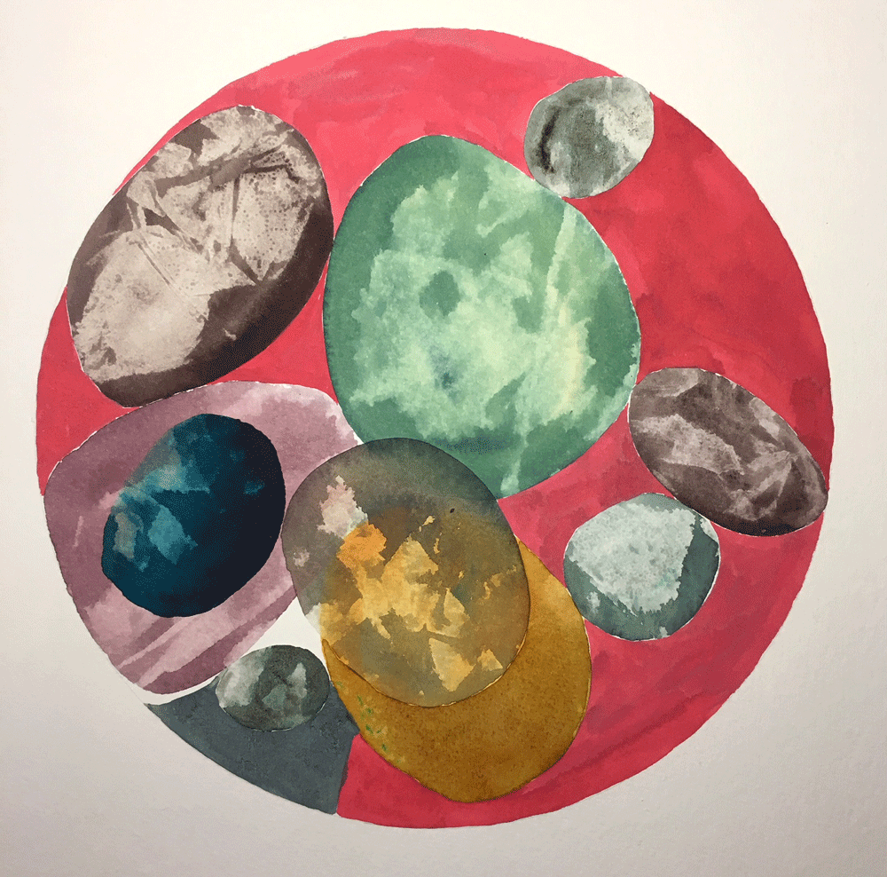Jostling Forms, Watercolour on paper, 19cm diameter