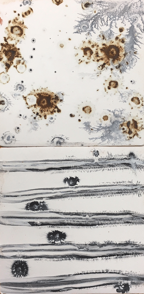 Two Ceramic Tiles, (8cm x 8cm each) biscuit fired stage