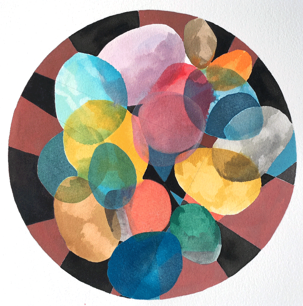 Forms in a Network, Watercolour on paper 19cm diameter