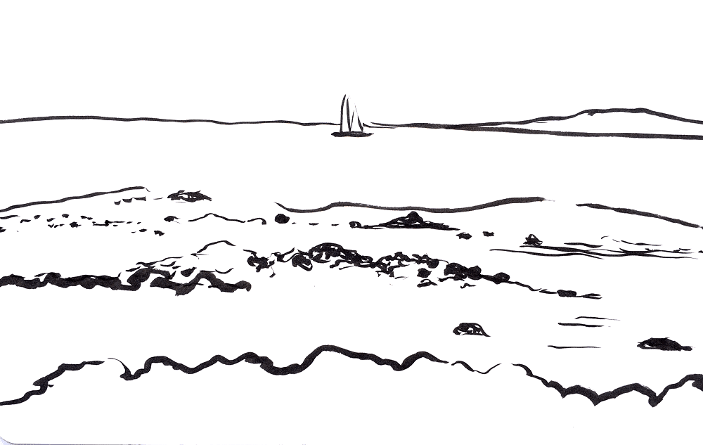 Half Moon Bay, Heysham with Sunderland Point cockling vessel, sketch