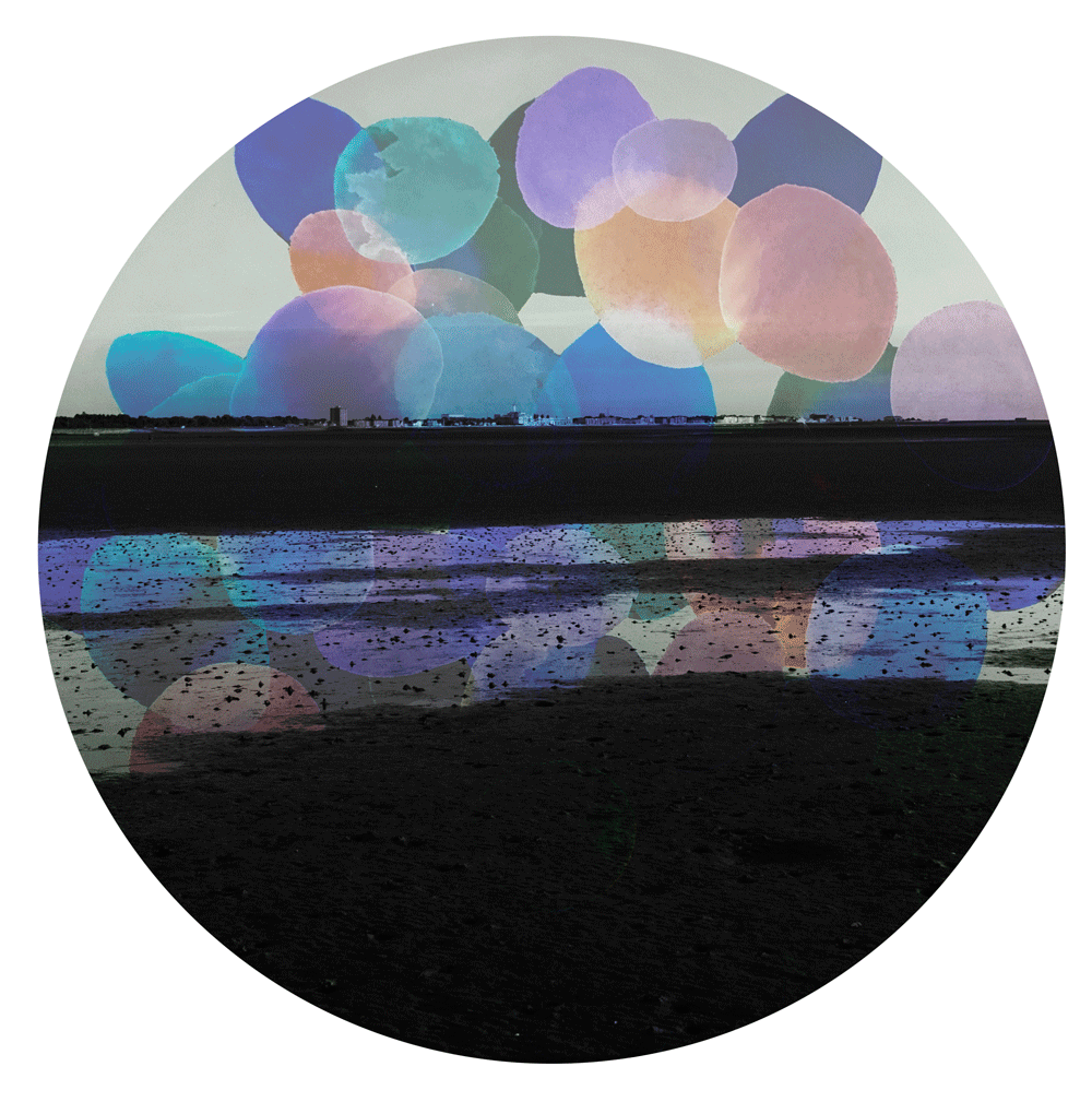 Morecambe Bay Sunset, photography with watercolour, digital print