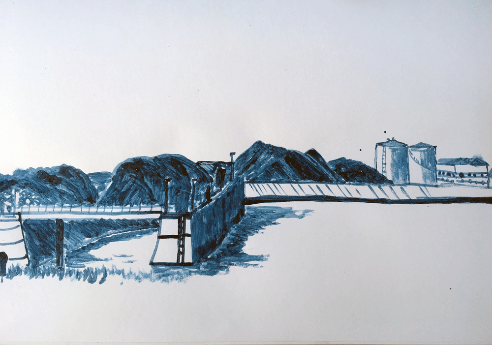 Down on the Docks, plein-air sketchbook page, tempera and pigment on paper. Size 42 x 30cm