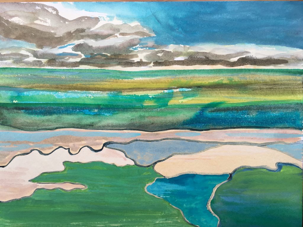 Salt Marsh, Sea, Sky. Watercolour on Paper, 30 x 40