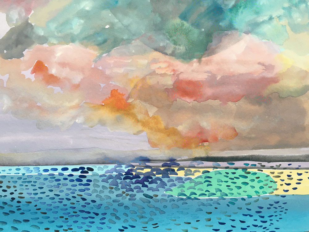 A Sunday Experiment in watercolour. Movements at the Coast, 30 x 40cm