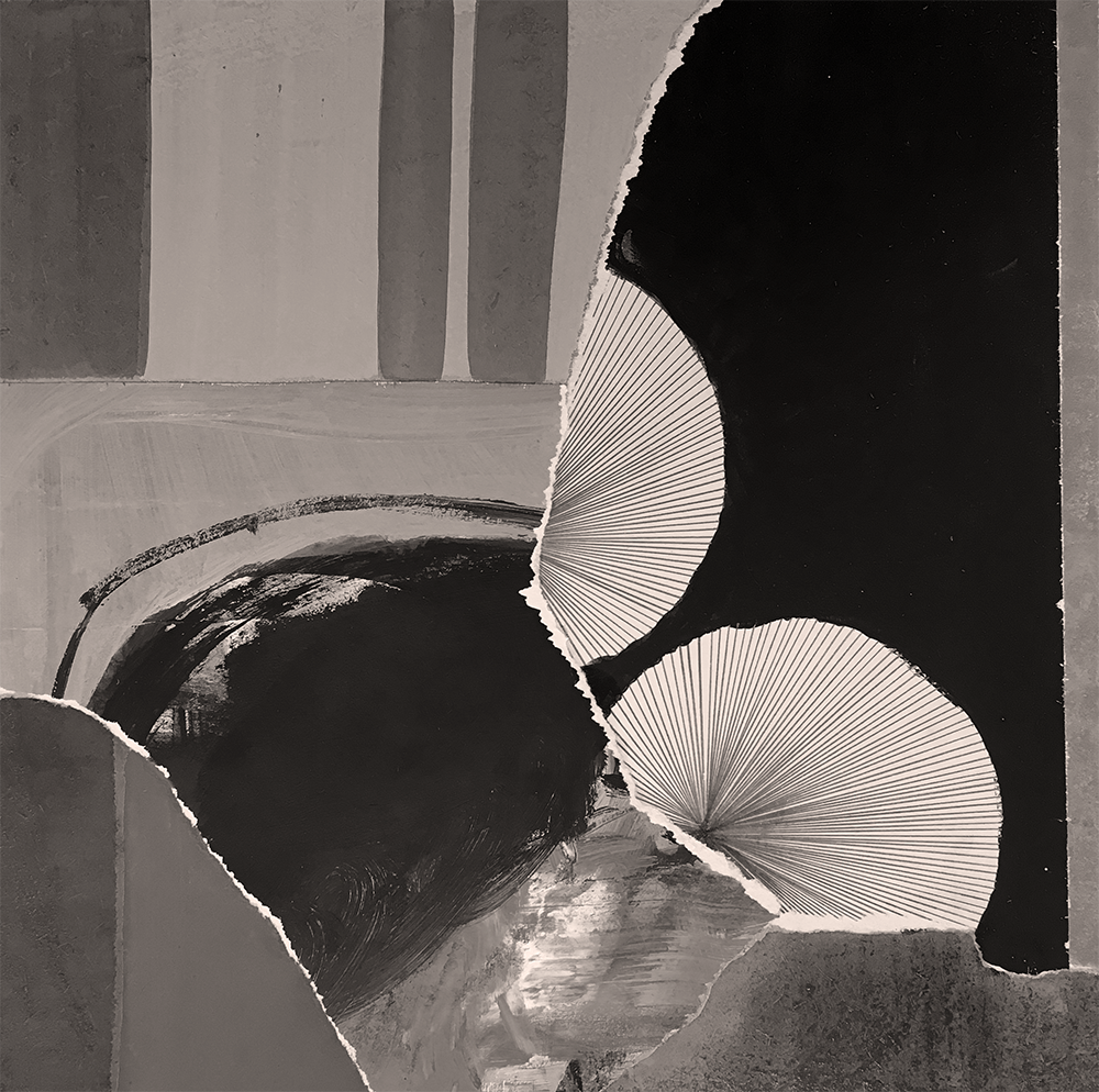 Piece No. 2 for the 12 x 12 exhibition. Collage, graphite, tempera and pigment. Desaturated while I think about palettes