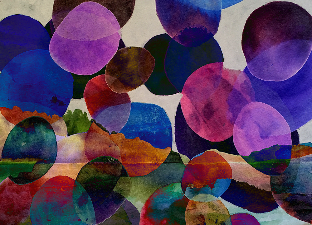 Ashuaia, Argentina. Watercolour with digitally overlaid watercolour of forms
