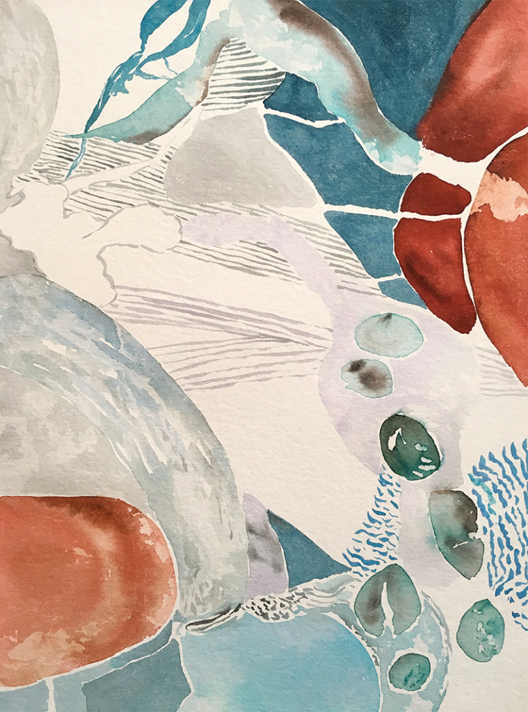 Evolving Forms along a coastline, watercolour 30 x 40cm