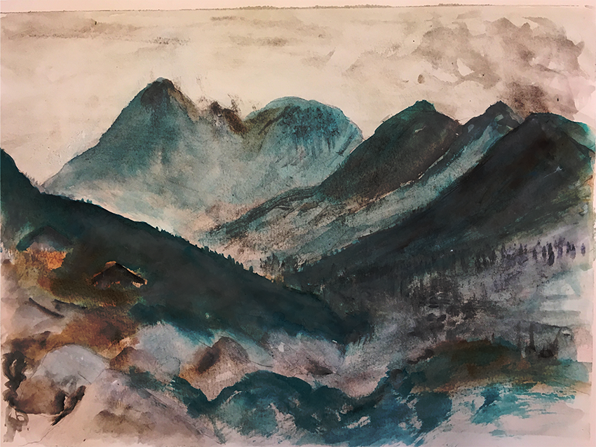Looking back at old work and have double digitally overlaid this watercolour in order to remake it