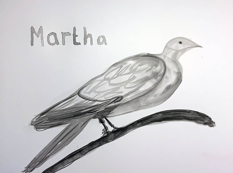 Martha - the last Passenger Pigeon, ink on paper, 30 x 40cm