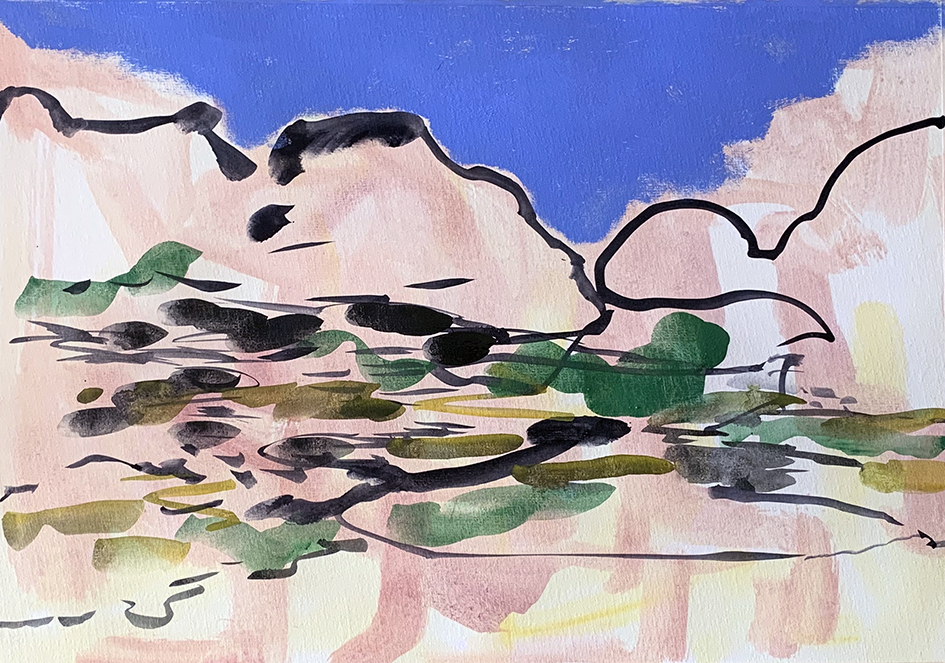 Sketch in egg tempera and acrylic - response to lockdown exercise walk 3 days ago