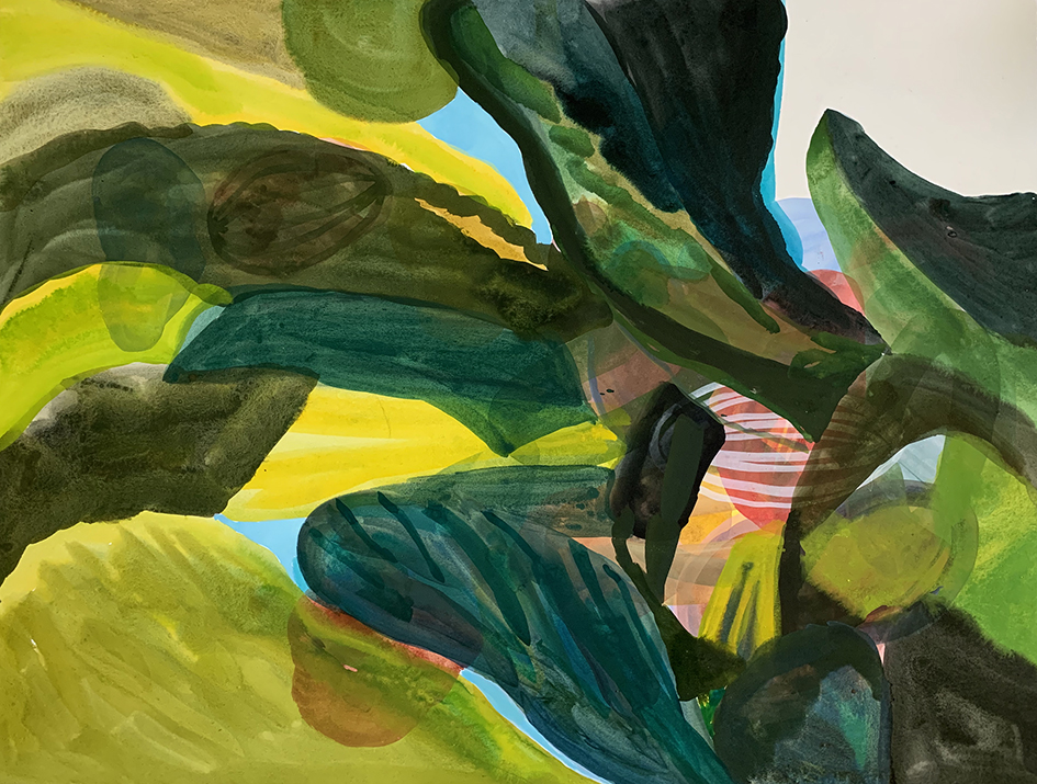 Evolving Forms with Spring Greens, egg tempera on watercolour paper, 64 x 47cm