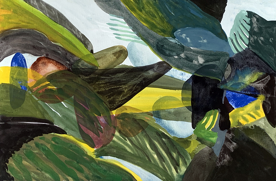Evolving Forms with Spring Greens, 42 x 30cm, egg tempera on paper