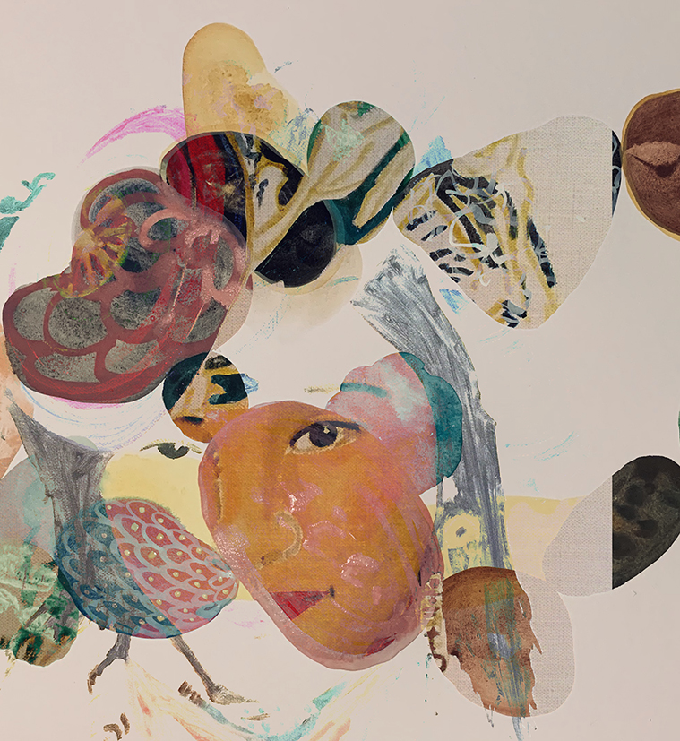 Two paintings digitally overlaid, one egg tempera, one oil, creating new serendipitous forms