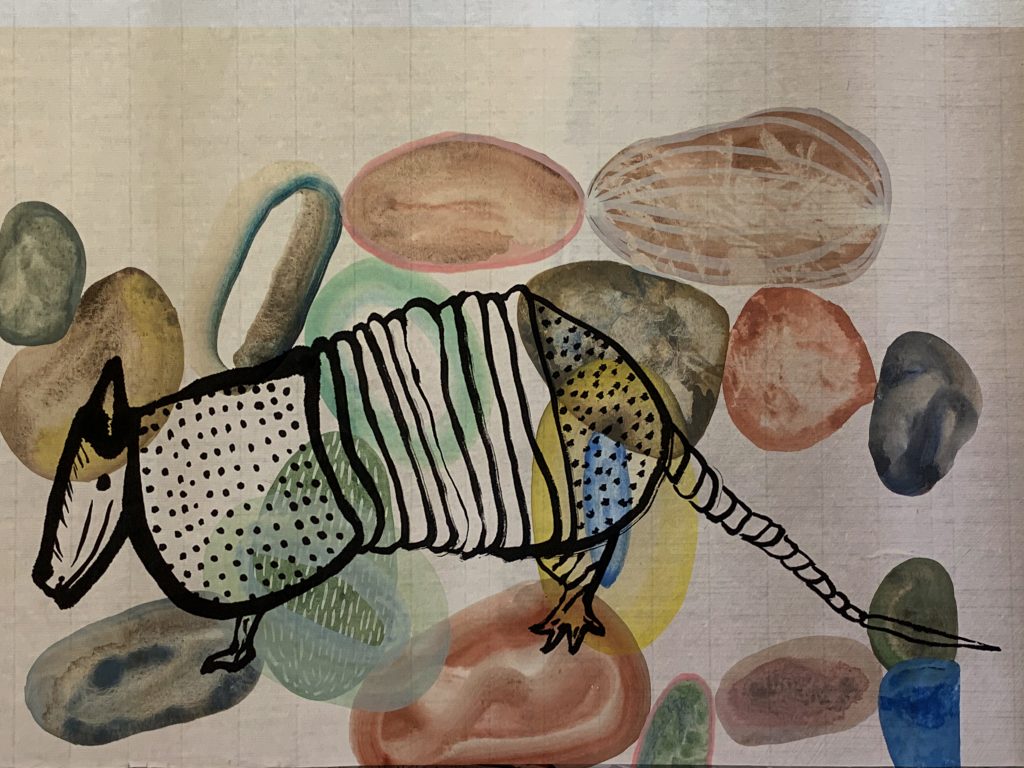 Evolving Forms, ink on rice paper with egg tempera painting digitally overlaid