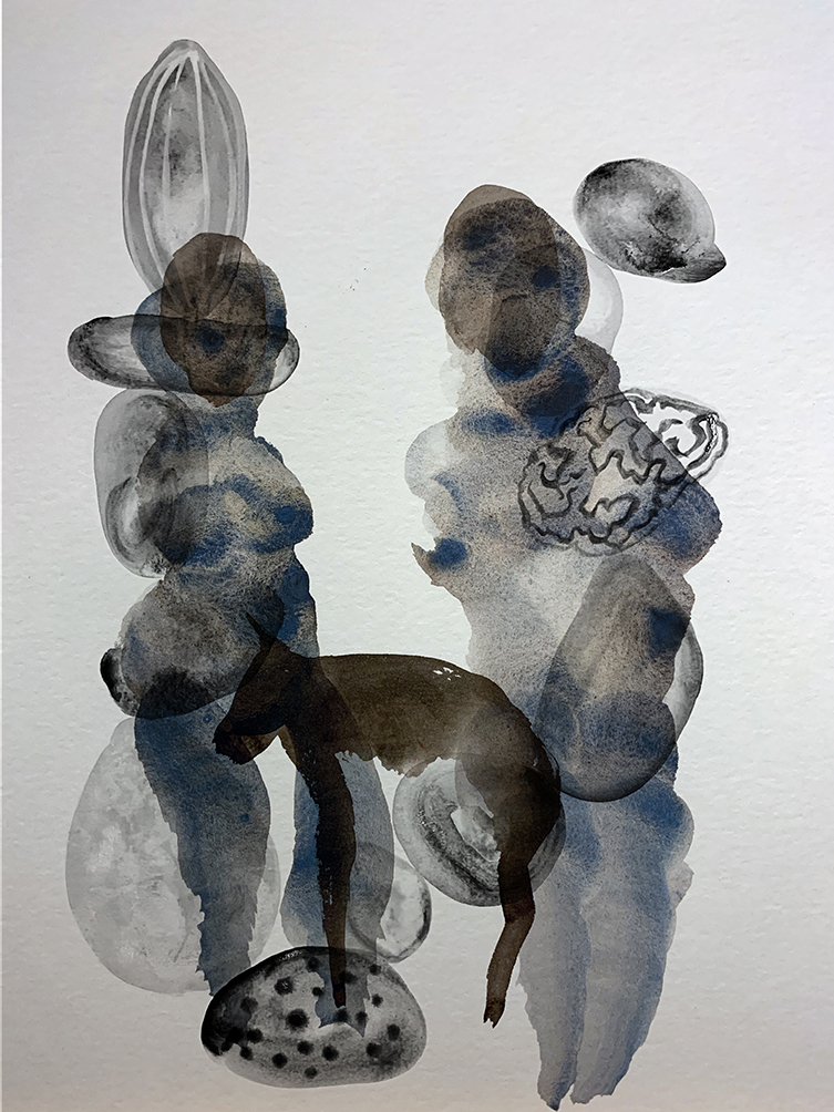 Evolving Forms, egg tempera. Two paintings digitally overlaid