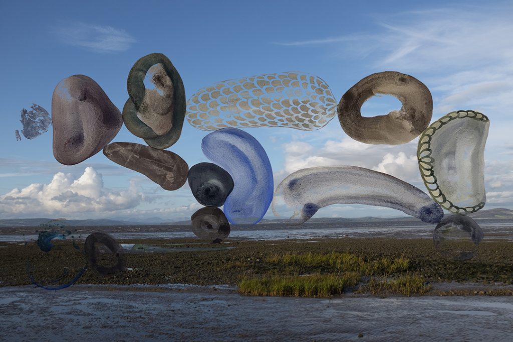 Coastline with Evolving Forms, egg tempera painting combined with photography