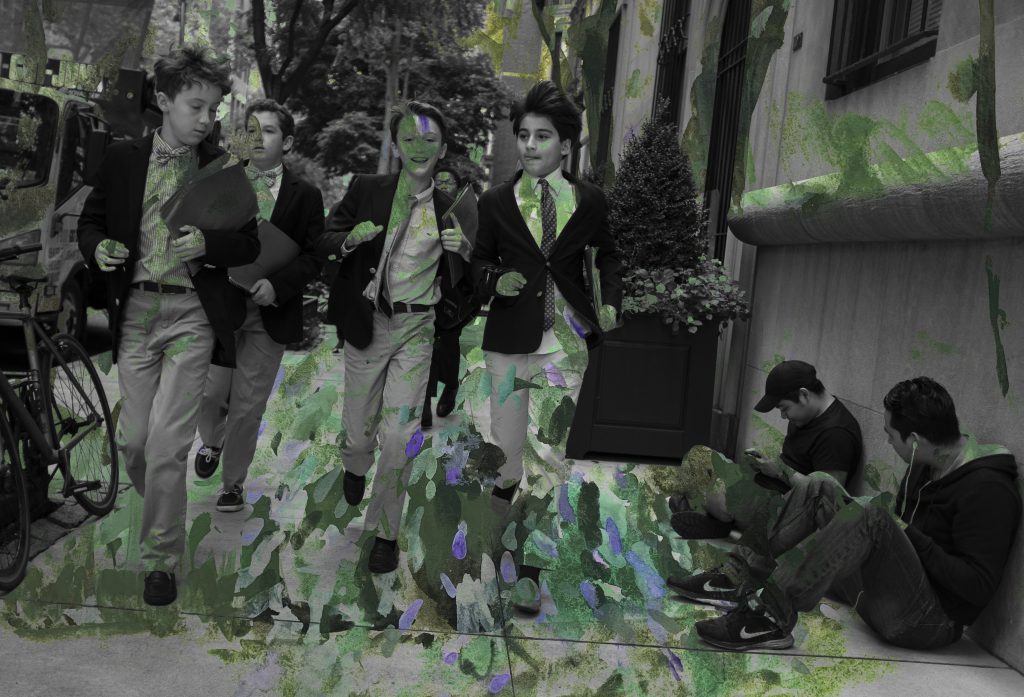 Photograph taken in New York (October 2019) combined with a painting of buddleia tree along the canal in Lancaster shortly after arriving back in the UK. An interest in sandwiching time and place resurfaced in 2014 after returning from New York to Morecambe Bay (Image May 10th 2014). Visiting the photography archive at New York Library and capturing the tinplates (with no copyright required), I melded one of those with Morecambe Bay the day after arriving home. Joining two images is a recurring process in my work, whether by directly making two drawings on top of one another or by digital means. It's a birth of sorts. A visual means of reproduction and continuity.