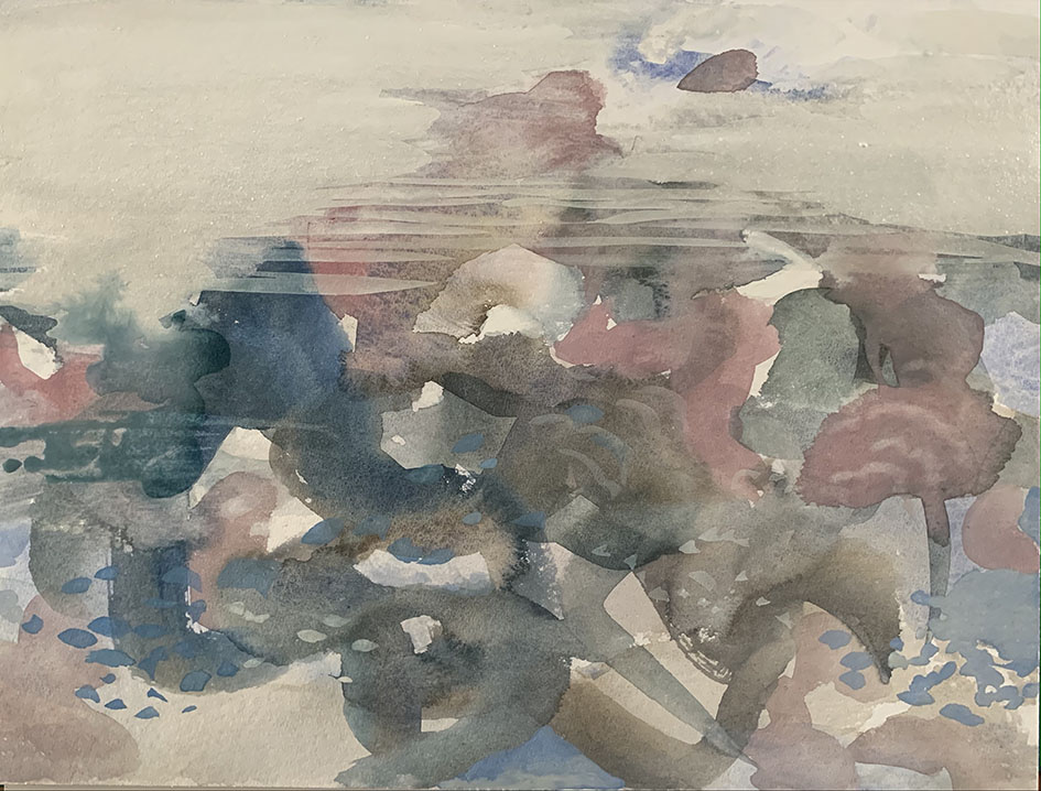 Visual response to the vast movements on Morecambe Bay. Gouache on paper, 24 x 32cm