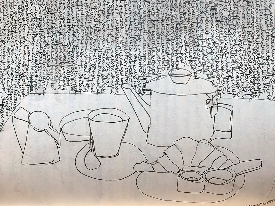 Drawing from 2007, Tea and Croissant at Tate Modern, moleskine sketchbook
