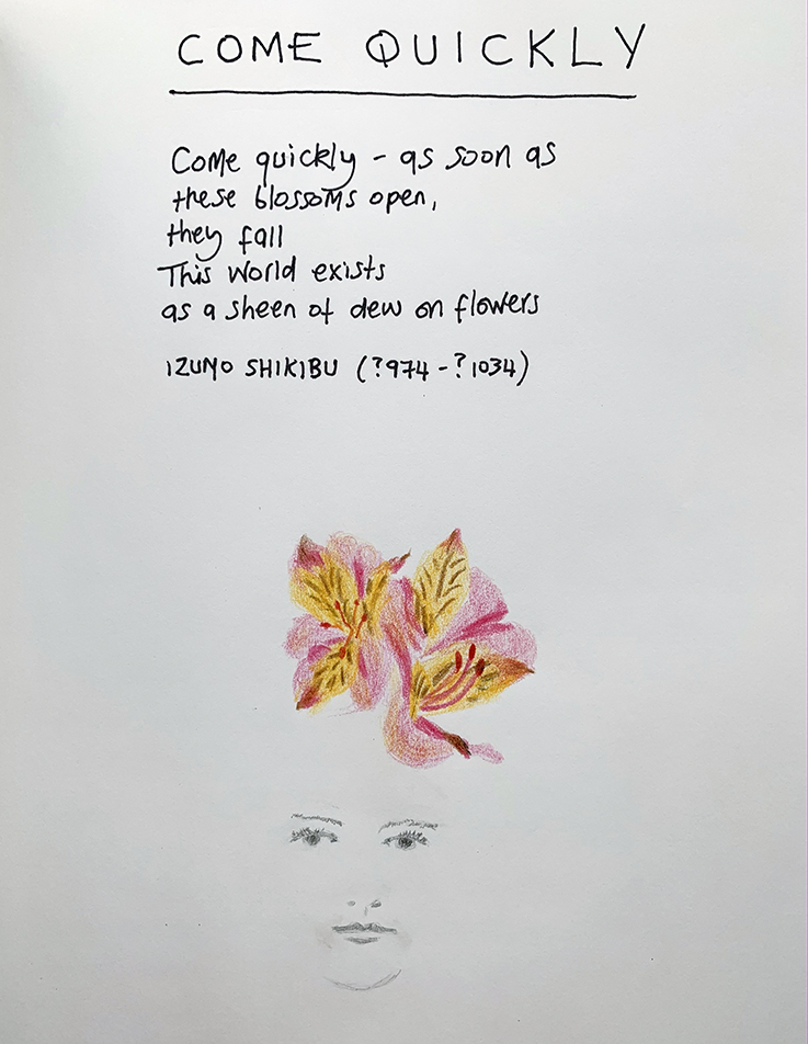 In the morning while the day is quiet, I sit on my garden bench sandwiched between the forsythia and crocosmia, drinking coffee, reading and sometimes drawing.