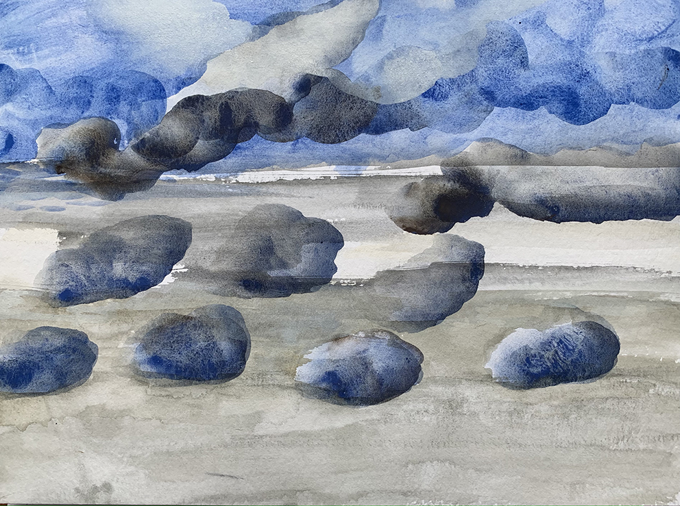 Sitting on the rocks today I was struck with the parallel forms of rocks and sky. Both mark the passage of time over the course of seconds and centuries. I was interested in that and how relative time is