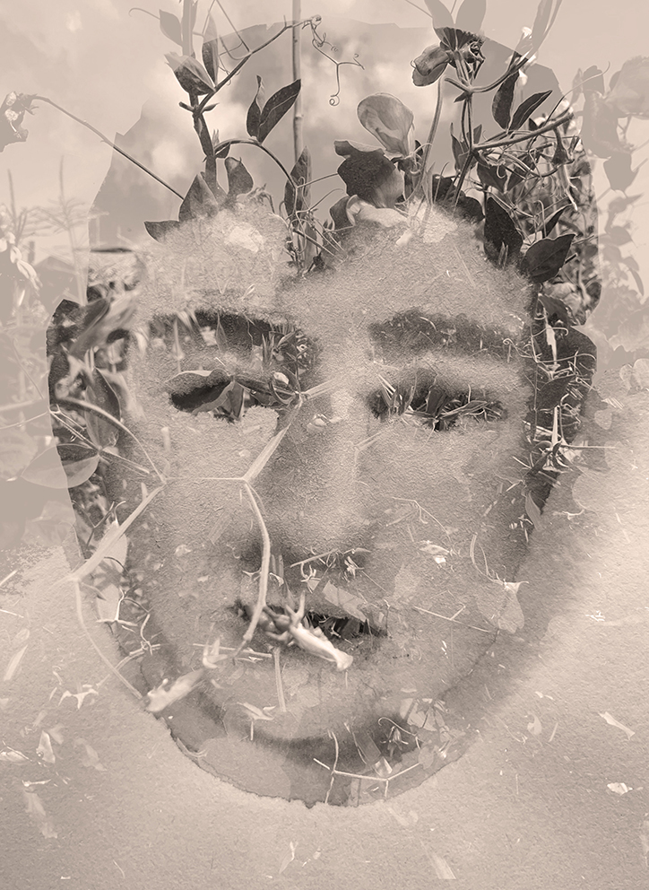 Another Sweet Pea head. The painting is one I came across in a sketchbook from 2017 and the sweet pea photograph from the allotment. I combined them and then desaturated the image. I love how the curled flower became a cigarette