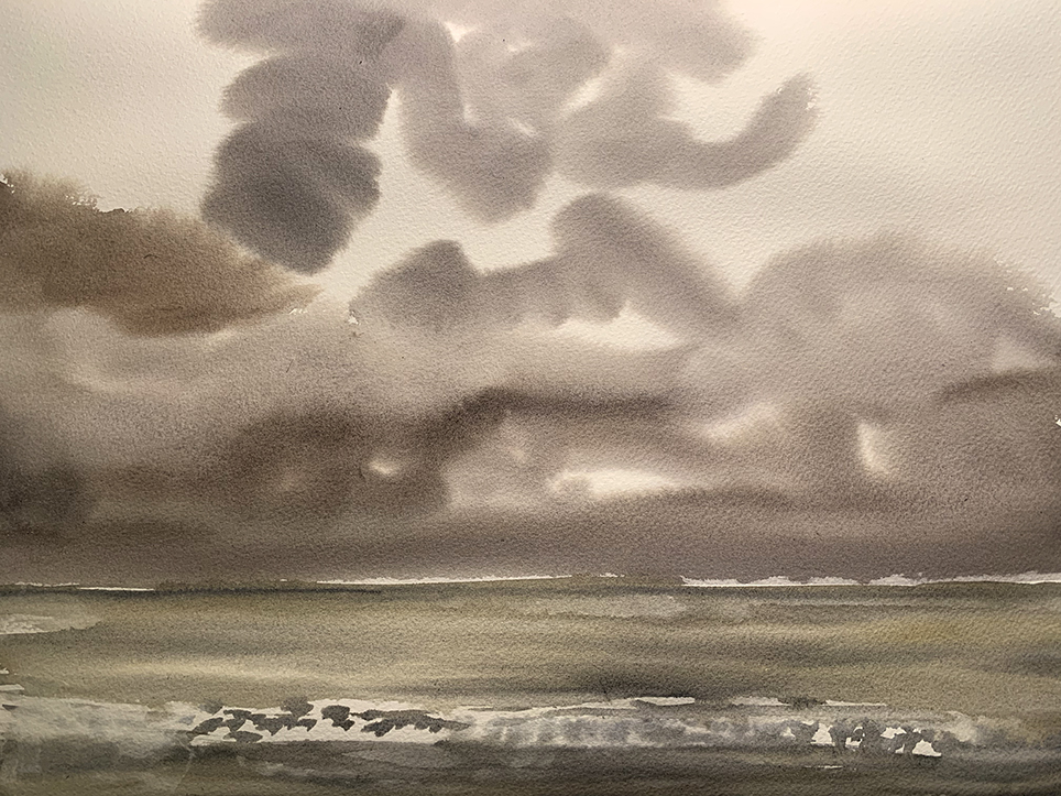 Inspired by yesterday's 6 mile walk along the promenade in Morecambe. Simple, free, healthy entertainment on nature's stage. Watercolour on Saunders Waterford Classic watercolour paper, 30 x 40cm.