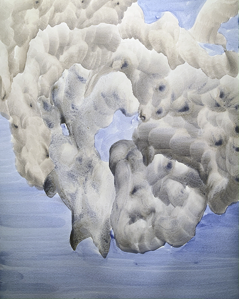 This was an experiment to steer away from containment. The effect is fluid and transitory and a shark form has made an appearance. I am interested in the many connotations for a narrative