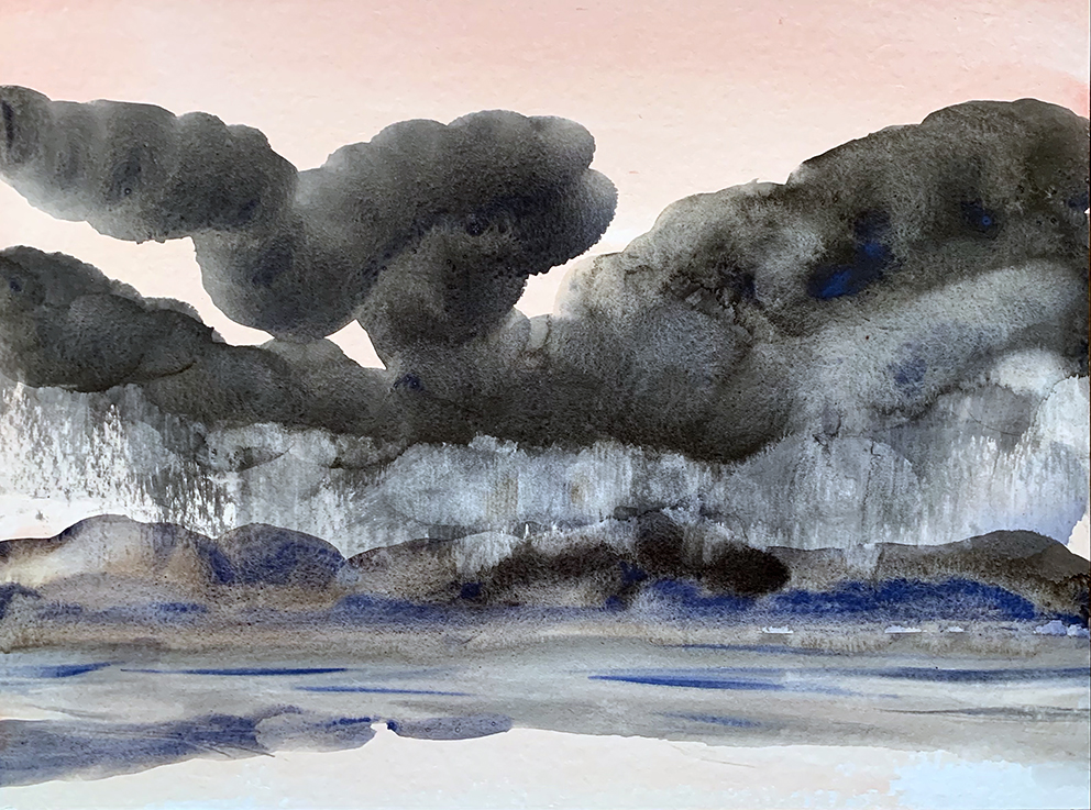 Egg Tempera on Hahnemühle Anniversary Edition 425gsm paper, 40 x 30cm. There has been drama over the bay with Storm Barra as the antagonist