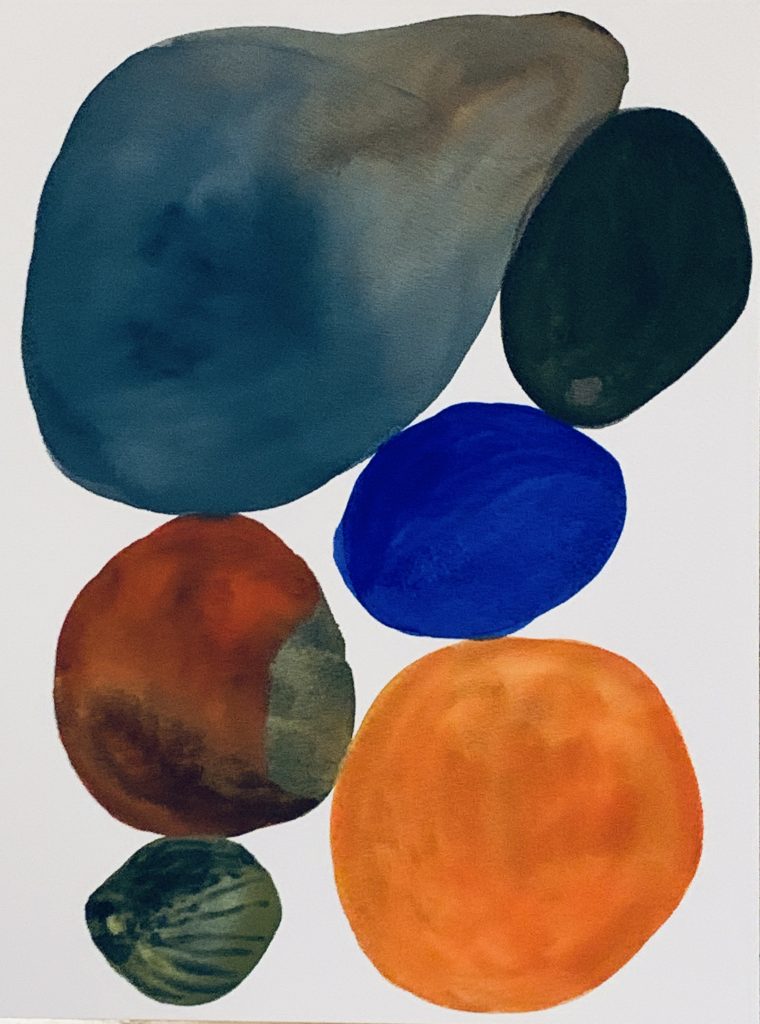 So enthused was I by those rocks decorated with lichen and reading about their life-cycles and fruiting bodies, that I had to put something visual on paper. I took a number of leads from what I’d seen and read. Densely packed, fruiting bodies and pops of colour was enough to light the spark. This is a series* I’ve been adding to for a number of years. It’s possibly the most satisfying and rewarding. I’m not sure why but believe it may be the making of something structured that also looks precarious. I prefer to paint from imagination too, so this series ticks all the boxes. Series: Abstract Forms