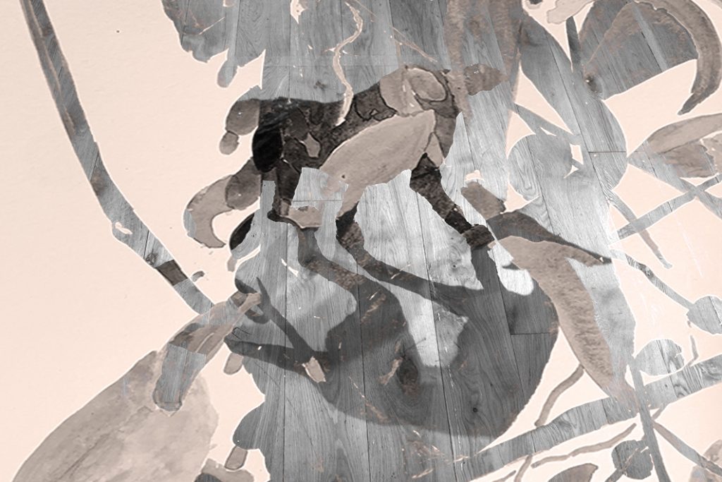 A photograph digitally overlaid with a painting and desaturated. Inspired by a week’s dog sitting in Surrey.