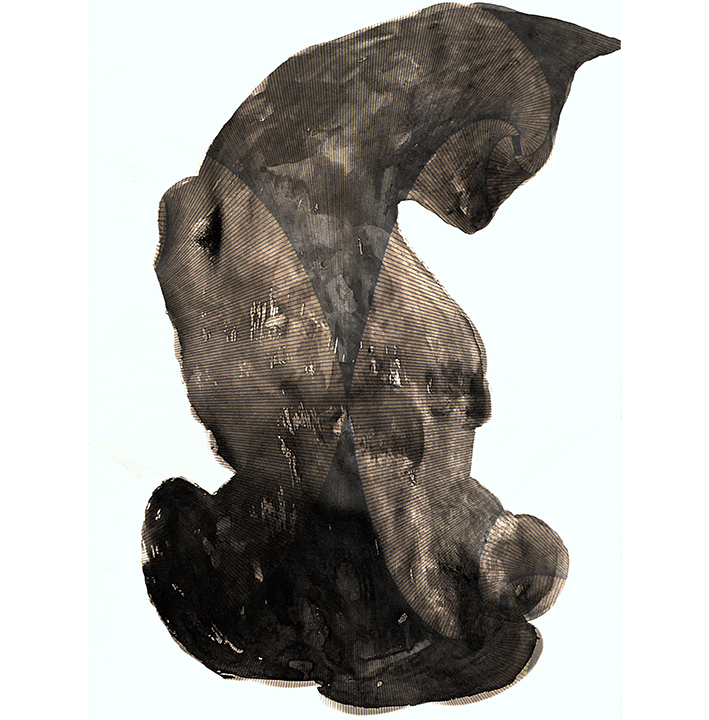 You can’t expect magic to happen every day but when it does, you know it happens through you, not because of you. The important thing is to keep on making, keep on thinking, keep experimenting. Only then the magic may come. Yesterday I made some very random marks in a sketchbook. The marks were made up of what I loosely refer to as ‘organic forms’. The yellow and green blobs on my A3 page looked to be the shape of a cat. It’s a bit like the cloud watching experience where you may spy all manner of things from teapots to elephants! So back to the yellow and green blobs … This morning I painted over the shapes forming a cat, with black ink making a couple of slight adjustments. Because of an interest in the underlying nature of things (which is highly structured in terms of the atoms everything is made up of), I overlaid one of my highly structured drawings. This particular drawing seems to bring the essence of the underneath to the surface. It can be experienced and felt, even though that may be subconscious. I have applied the drawing to other forms both photographic and painted in a desire to convey both the seen and the unseen. Today I am grateful for the gift but don’t expect to be given another today. I’ll keep on making in the hope another may present itself one day.