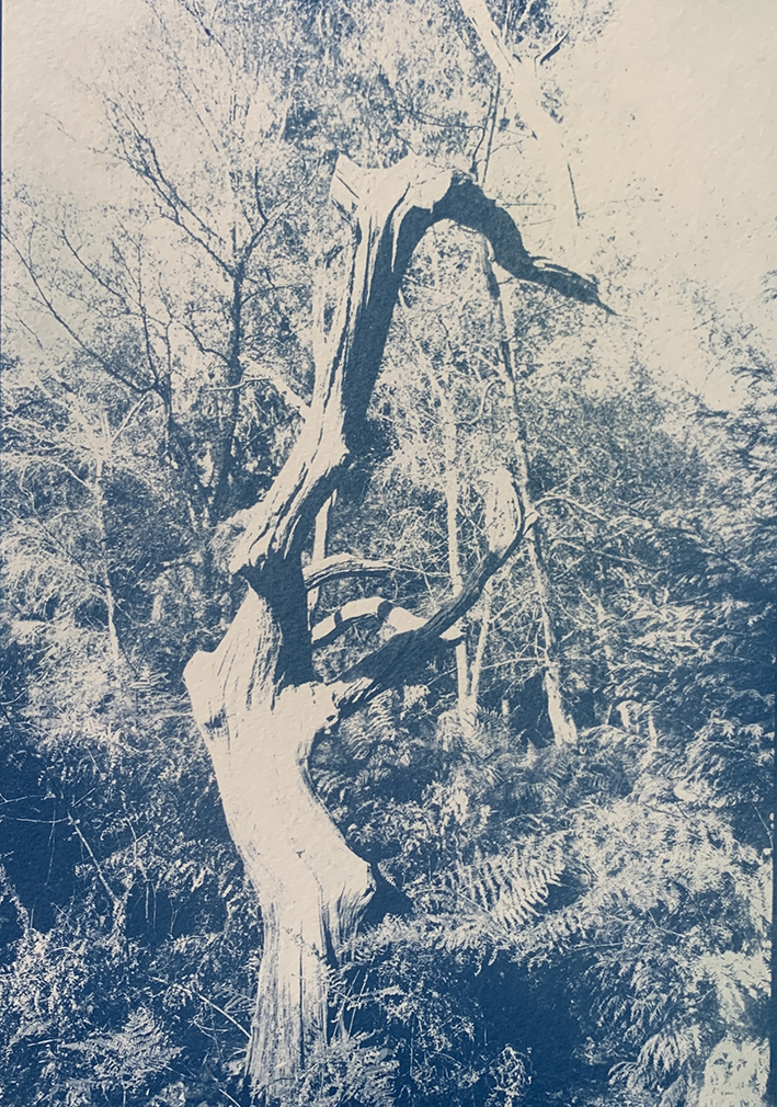 Another cyanotype print with a different exposure time. Despite the loss of detail on the tree, the atmosphere of the scene is intact, perhaps more so than the detailed print of yesterday. Striving for perfection isn’t necessary. There will be other gifts along the way. For me this conveys a sense of the place in a more subtle, timeless manner