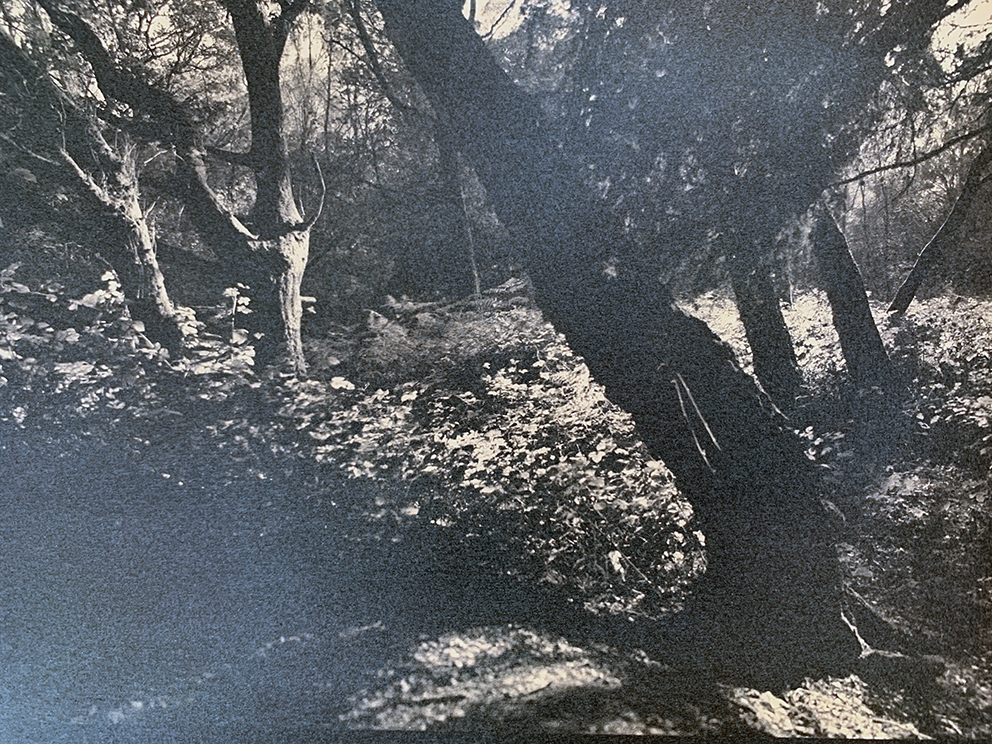 Continued experiment printing photographs using the cyanotype process. I soaked this one in tea to take it from the typical prussian blue of the process to black and white. The scene is from Albury Wood in the Surrey Hills.