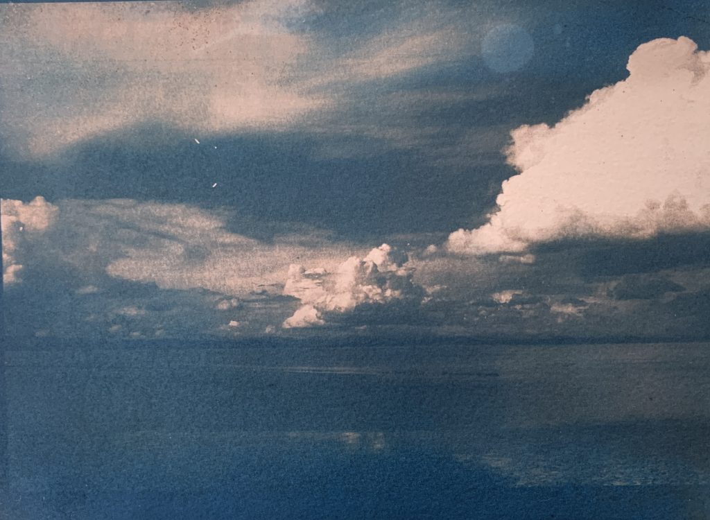 Cyanotype print, size 29.7 x 42cm: sea and sky at Morecambe Bay