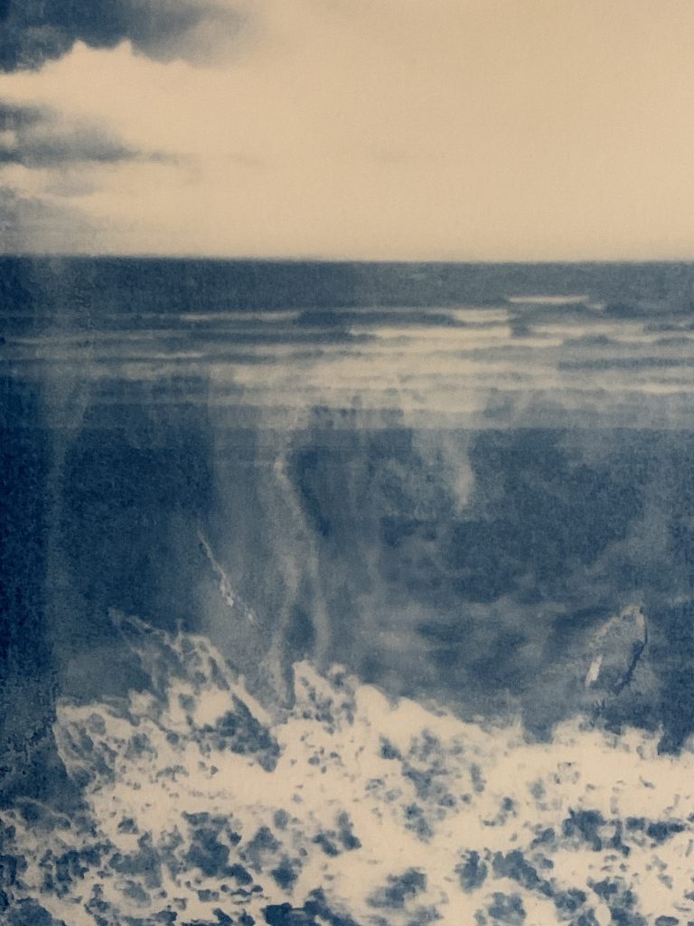 I like how these cyanotypes are only partially controllable. In this one I see a leaping fish and a sideways on torso. I wonder what others will see?
