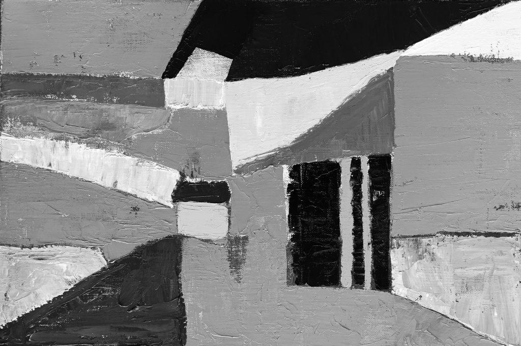 Another oil painting from 2019, again desatured. Seeing things in greyscale highlights the structural components. Things are becoming clearer. This is the painting style closest to my psyche. I like to photograph the weather, the skies, the sea but painting them is completely unsatisfying and pointless for me. The challenges of abstraction holds rewards like no other form of painting.