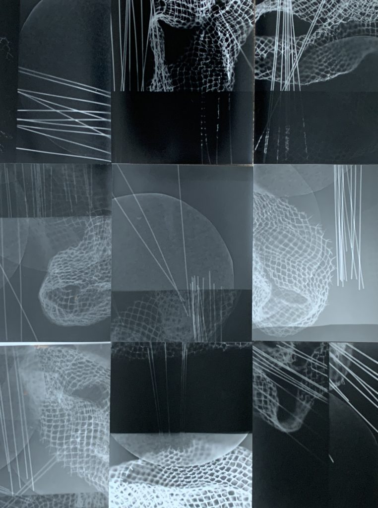 Everything is visually seesawing. The cyanotypes lead back to painting and abstract painting is leading back to abstract photography. This construct measures 75 x 65cm and in terms of mathematic factorials can be be reformulated in 479 million combinations.