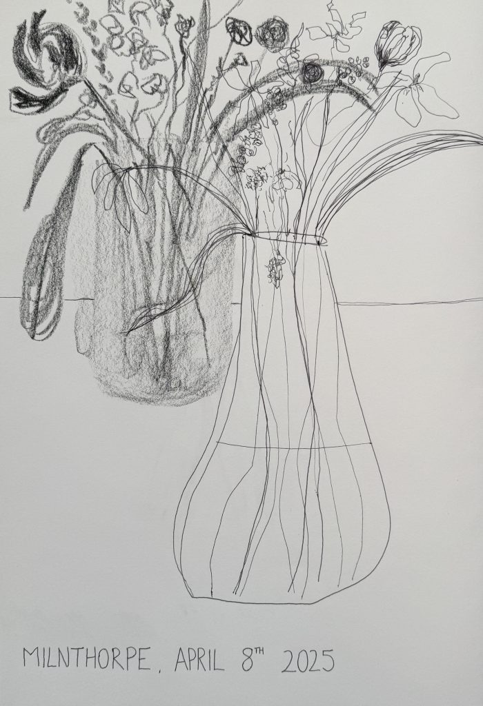 This site was never supposed to be a visual diary but occasionally it just happens to be. I'm in Milnthorpe looking after 3 beautiful cats (possibly some drawings will follow). I made a quick drawing this morning - it's hard to resist a vase of flowers.