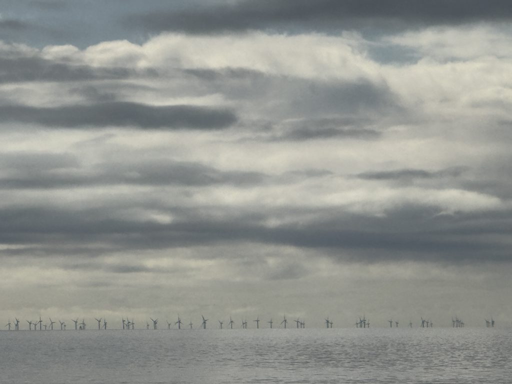 The wind farm east of Barrow, Morecambe Bay, Lancashire, UK. The sky photographed here, is so similar to the one I painted a couple of days ago. This happens often and always amazes me. Kind of unbelievable!